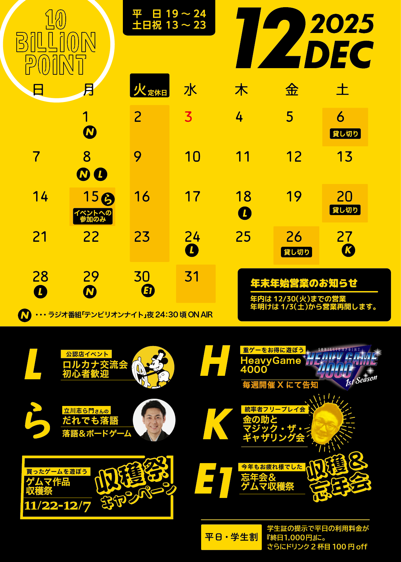 【2025年12月カレンダー】 イベントやキャンペーン一覧です