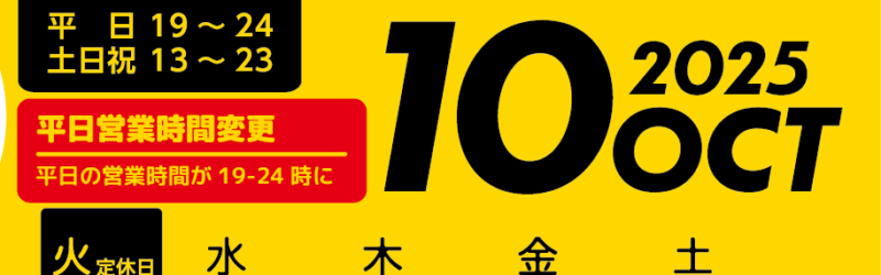 ※2025年5月から平日は19時オープンになります。